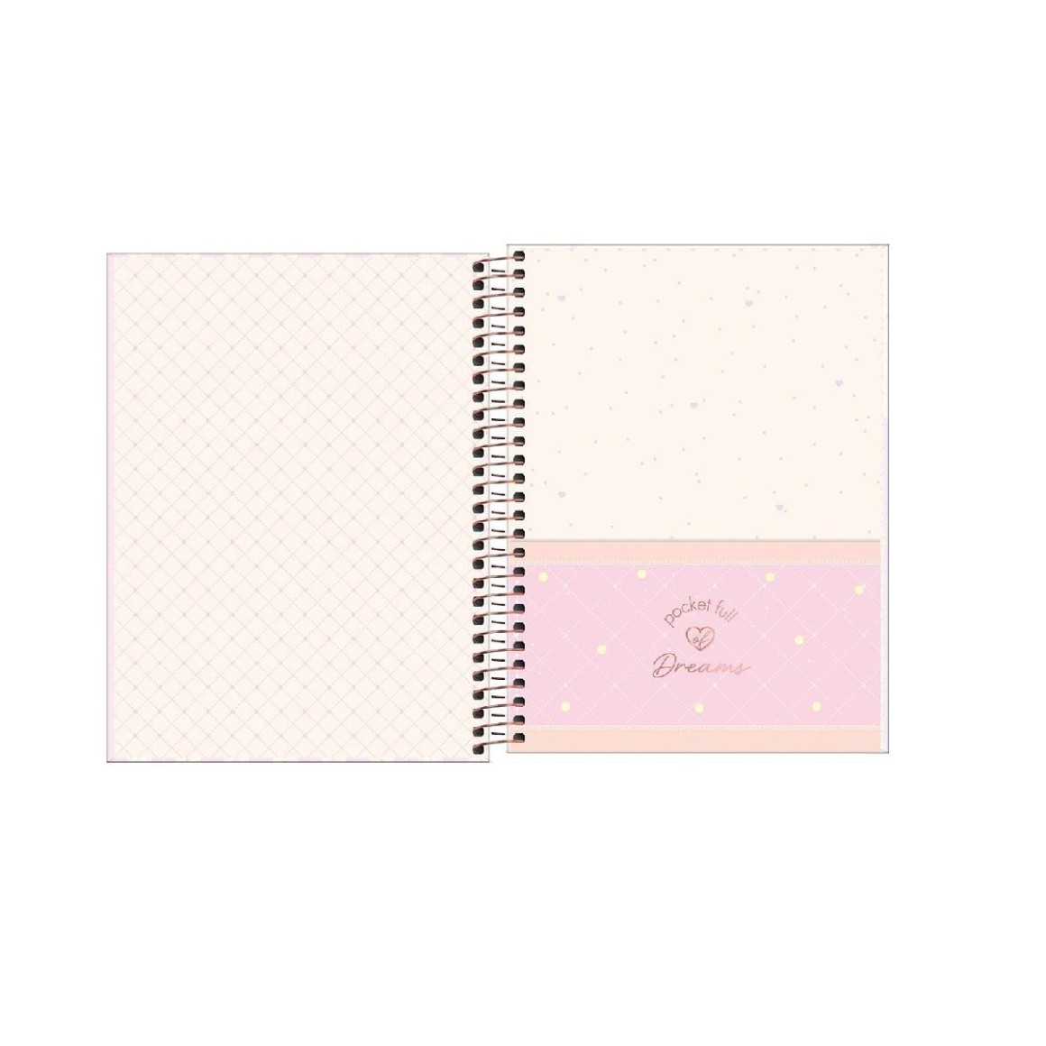 O Caderno Espiral Capa Dura Universitário 20 Matérias Soho 320 Folhas possui capa dura com detalhe metalizado, parte interna decorada, bolsa de papel decorada para guardar trabalhos e anotações, folha com adesivos funcionais, folhas pautadas decoradas e espiral colorido. Ideal para o dia a dia na escola ou na faculdade.