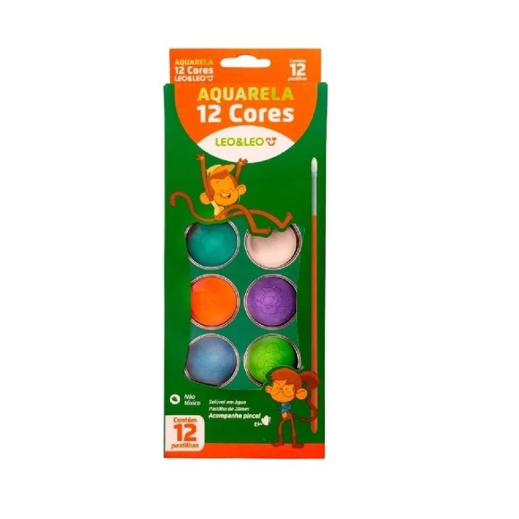 TINTA AQUARELA 12 CORES + PINCEL LEO&LEO