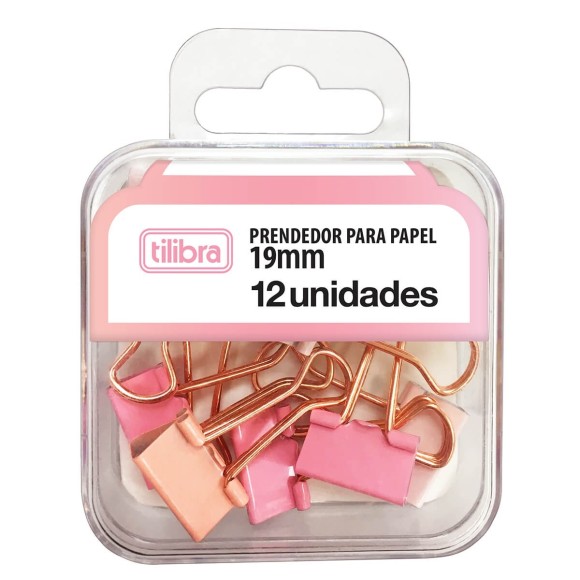 PRENDEDOR DE PAPEL 19MM ROSA PASTEL 12 UNIDADES TILIBRA