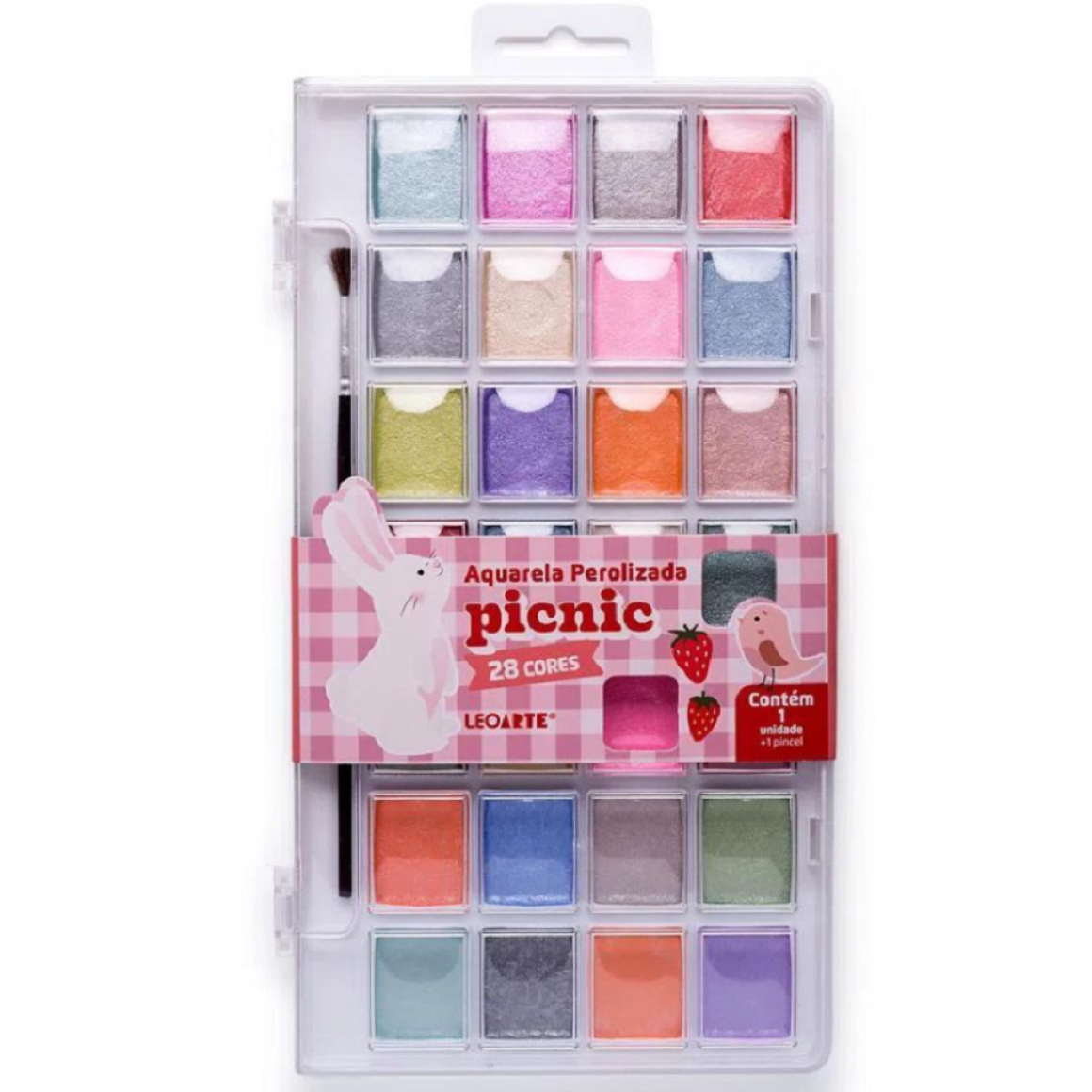 AQUARELA PEROLIZADA ESTOJO C/28CORES+PINCEL LEOARTE