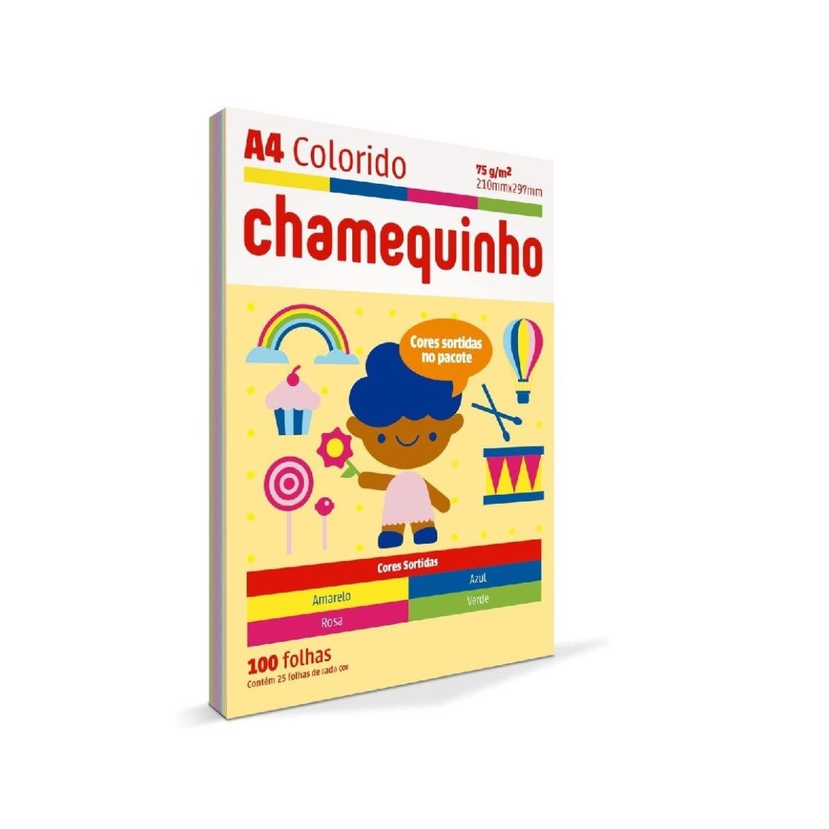 PAPEL SULFITE A4 COLORIDO 75G 4 CORES 100FLS CHAMEQUINHO