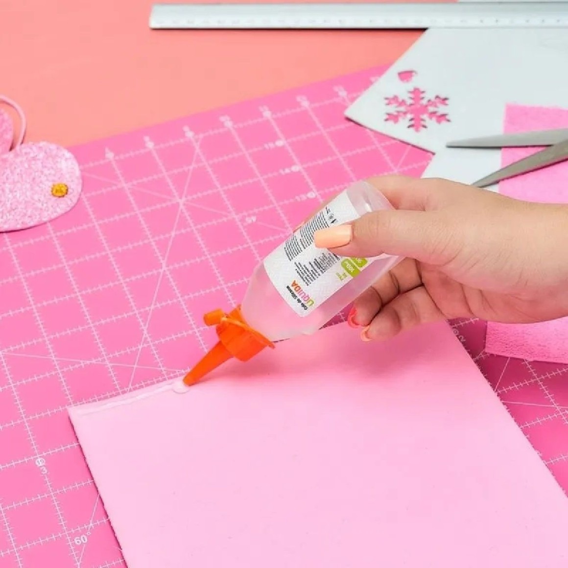 A Cola de Silicone é recomendada para trabalhos artísticos, especialmente para trabalhos em E.V.A., isopor*, papel, papelão, tecidos, esponjas, cortiças, madeiras, entre outros.