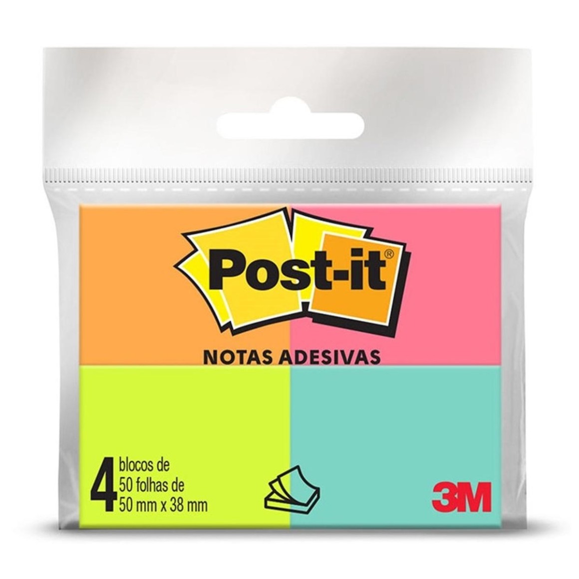 Post-it com 4 Blocos de Notas Adesivas com 50 Folhas 50X38mm Colorido 3M