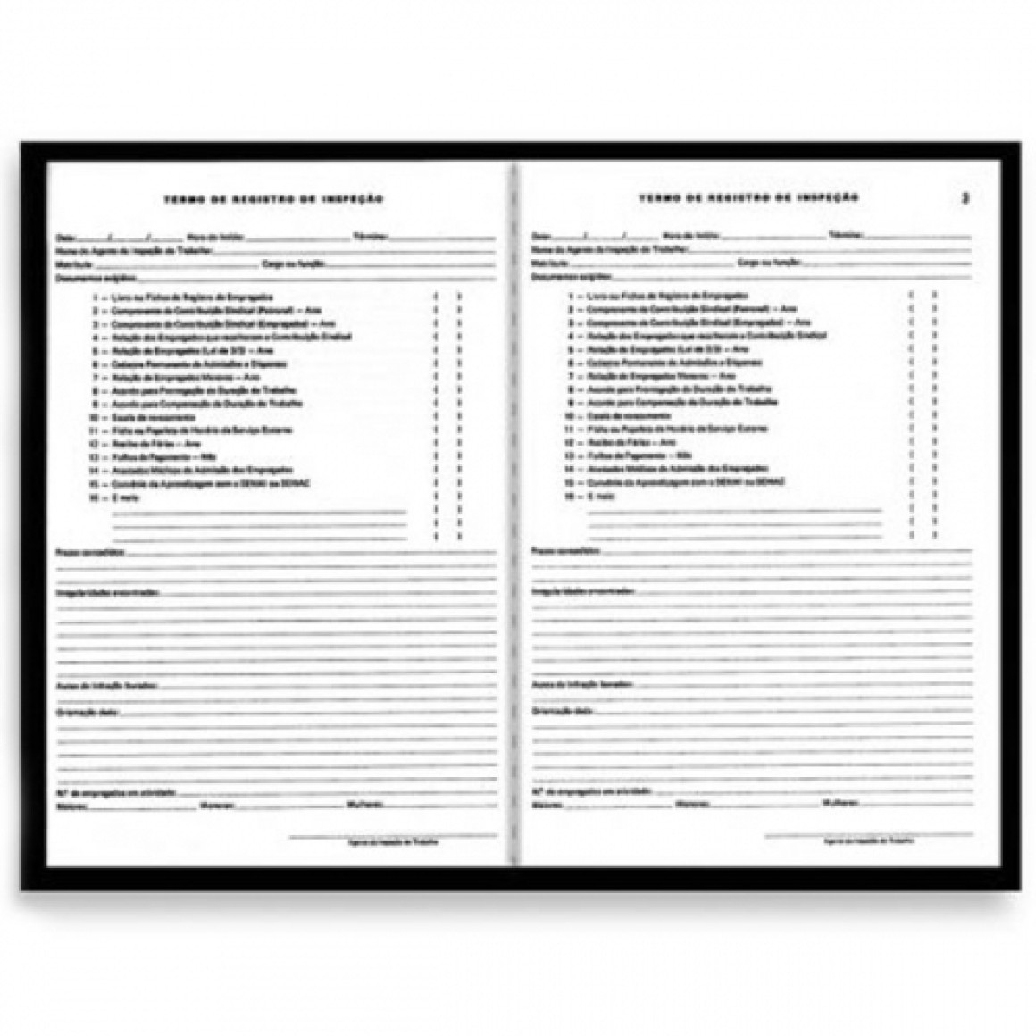 LIVRO DE INSPEÇÃO DO TRABALHO C/ 50 FOLHAS CAPA DURA TAMOIO