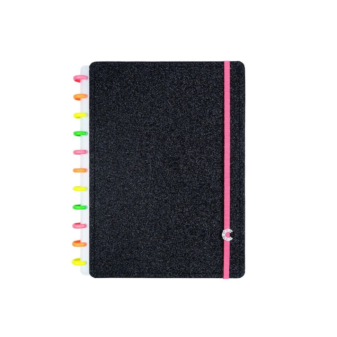 CADERNO LET'S GLITTER NEON BLACK MEDIO CADERNO INTELIGENTE