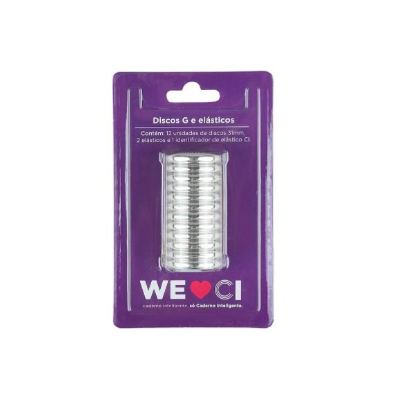 Customize o seu Caderno Inteligente® com o kit de discos e elástico para caderno na cor prata, dando um toque diferente e exclusivo ao seu produto!