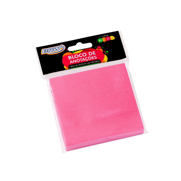 BLOCO DE ANOTACOES 76X76MM 100FLS ROSA NEON BRW