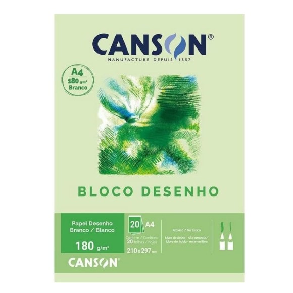 BLOCO DESENHO A4 180G 20 FOLHAS BRANCO CANSON
