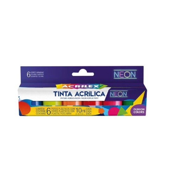 TINTA ACRILICA FOSCA NEON 10ML 6 CORES ACRILEX